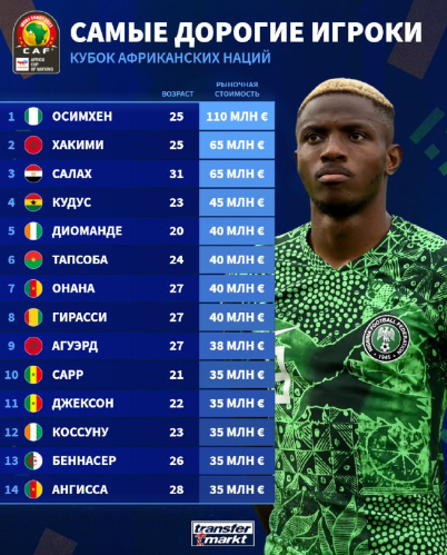 Transfermarkt-ը հրապարակել է Աֆրիկայի ազգերի գավաթի ամենաթանկ ֆուտբոլիստների ցուցակը։