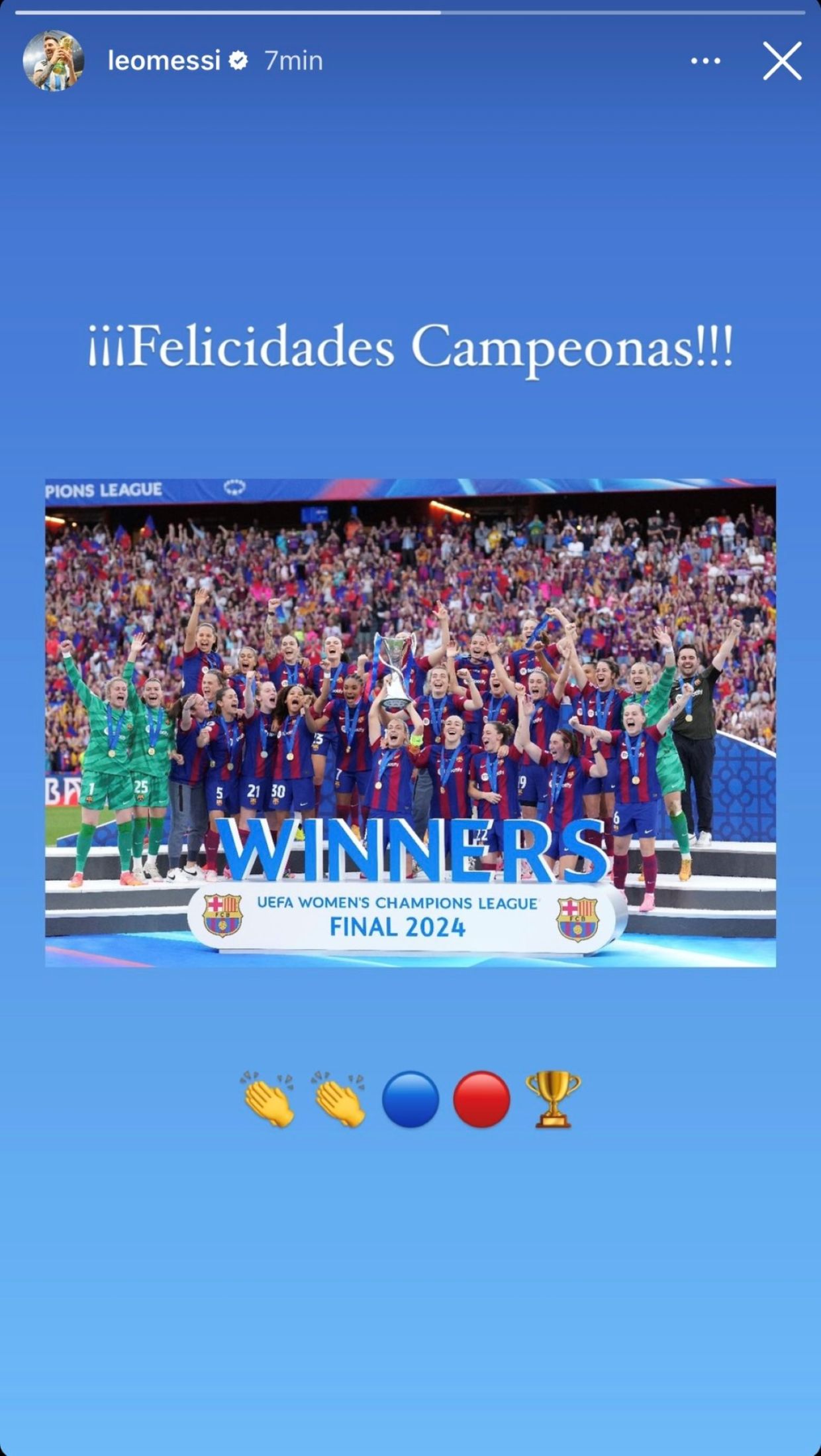 Արգենտինացի «Ինտեր Մայամիի» հարձակվող Լիոնել Մեսսին շնորհավորել է «Բարսելոնային» այս մրցաշրջանում ՈՒԵՖԱ-ի կանանց Չեմպիոնների լիգայում հաղթելու կապակցությամբ: Հիշեցնենք, որ 36-ամյա ֆուտբոլիստը նախկինում հանդես է եկել Կատալոնիայի տղամարդկանց հավաքականում։