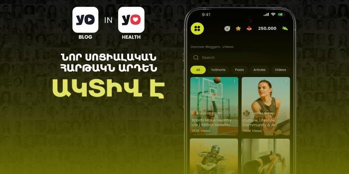 YoHealth-ն ակտիվ ապրելակերպը խթանող բջջային հավելված է, որը հաշվարկում է օգտատերերի քայլերը և դրամայնացնում դրանք։ Այն նաև նորարարական մարքեթինգ է, որը հնարավորություն է տալիս տնտեսվարողներին բարձրացնել իրենց արտադրանքի ճանաչելիությունը թվային նոր հարթակում։ Հավելվածը հասանելի է ինչպես App Store-ում, այնպես էլ Play Market-ում։