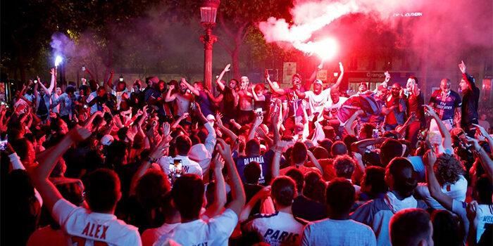 Երկրպագուները օգտագործում են ծխային ռումբեր և լուսարձակներ։ Ոստիկանությունը փորձում է ջրցան մեքենաներով և արցունքաբեր գազով ցրել Շանզ-Էլիզե հրապարակ եկած երկրպագուներին, որոնք տոնելու էին «Արսենալի» նկատմամբ հաղթանակը։