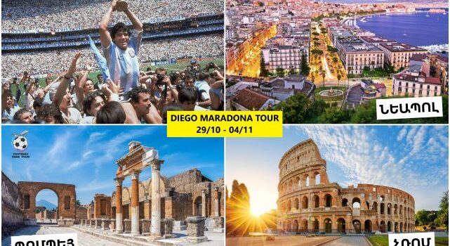 Ահա, Football Fans Tour-ը հետաքրքիր տուր է կազմակերպում դեպի Նեապոլ, որտեղ ֆուտբոլասերները կլինեն բոլոր այն վայրերով ու տեղերում, որոնք հիշեցնում են Դիեգո Մարադոնային: Խմբի բոլոր մասնակիցներին սպասվում է նաև ՆՎԵՐ՝ «Նապոլիի» #10 MARADONA մարզաշապիկ ![]()