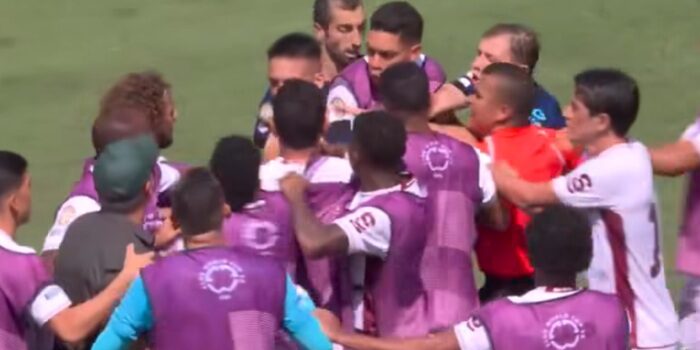 ⚽️ Sale el balón de banda y Renato Gaúcho lo patea para perder tiempo y Mkhirtaryan le pega un pechazo al míster.