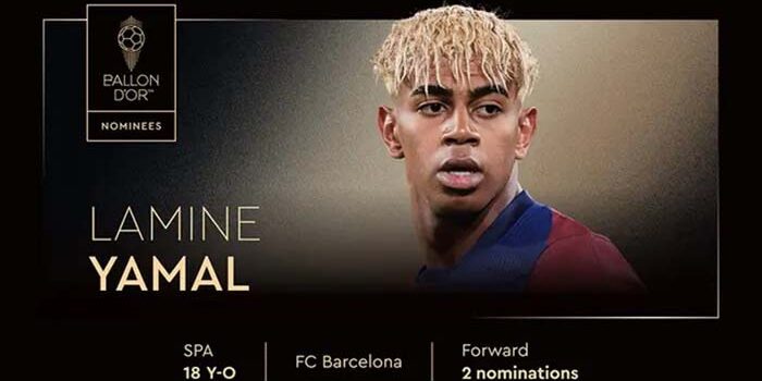 «Բարսելոնայի» 18-ամյա հարձակվող Լամին Յամալը դարձել է պատմության մեջ ամենաերիտասարդ ֆուտբոլիստը, որը ընդգրկվել է «Ոսկե գնդակի» քվեարկության լավագույն եռյակում, ըստ Stats Foot վիճակագրական պորտալի։