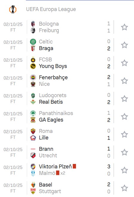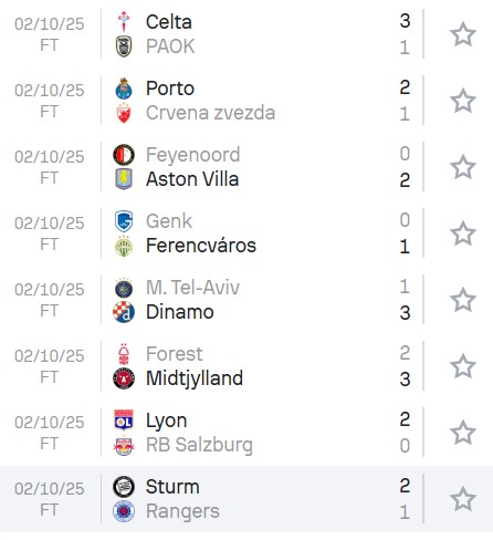Երկու տուրից հետո «Ցրվենա Զվեզդան» ունի 1 միավոր և 26-րդ տեղում է մրցաշարային աղյուսակում, մինչդեռ «Պորտուն» 6 միավորով շարունակում է առաջատարների պայքարը։