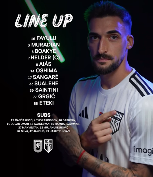 Այսօր՝ հոկտեմբերի 23-ին, ՈւԵՖԱ Կոնֆերենցիաների լիգայի 2025/2026 մրցաշրջանի լիգայի փուլի 2-րդ տուրում ռումինական «Ունիվերսիտատեա Կրայովան» կհյուրընկալի Հայաստանի չեմպիոն «Նոային»: